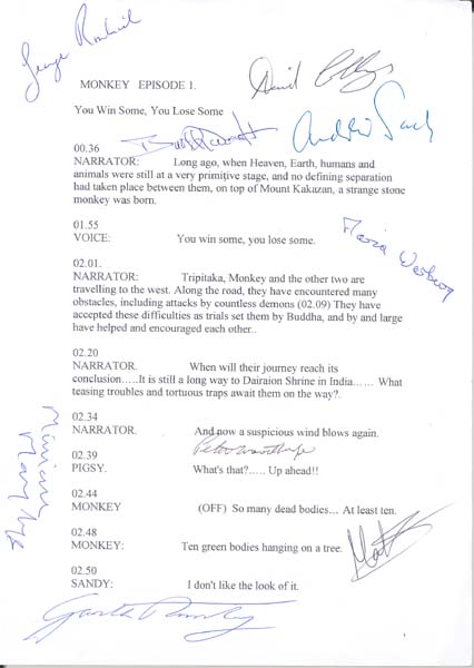 Here's an autographed copy of the 1st page of the 1st unseen episode that I have been given - click on the image to see a larger version of it: