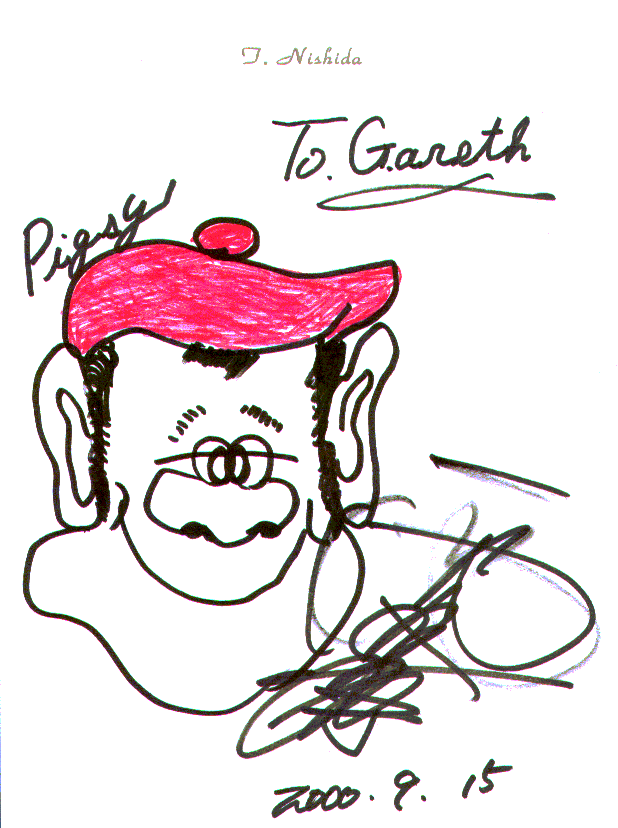 The amazing news is that on Monday 25 September 2000 he got a letter back from him, including an autographed caricature of him as Pigsy!