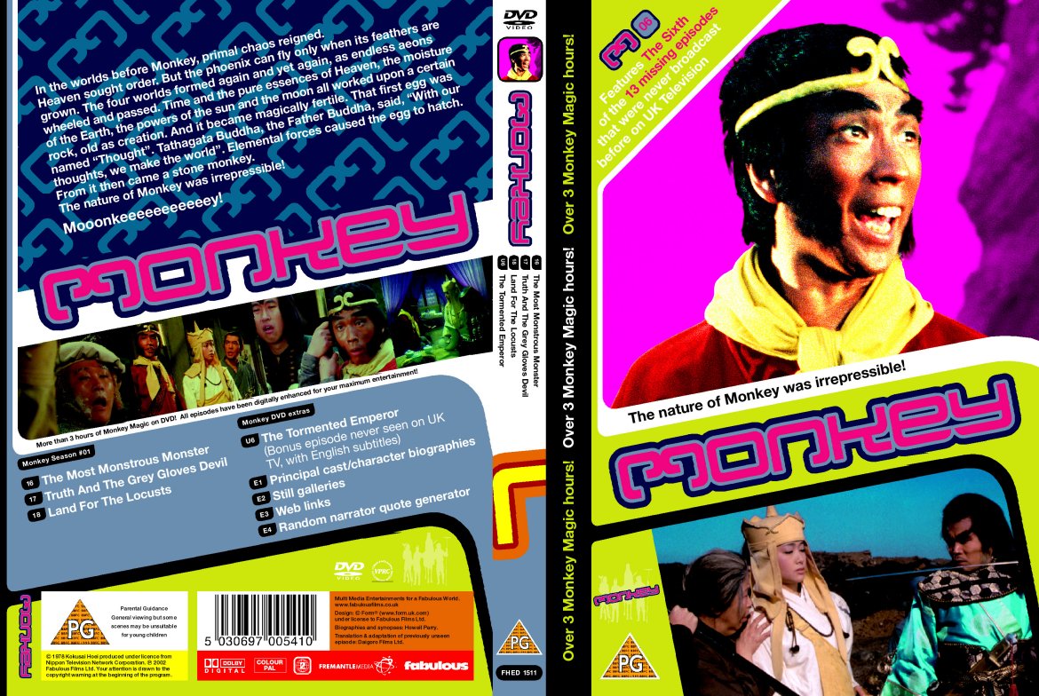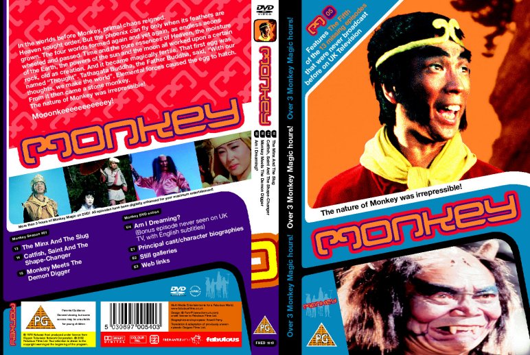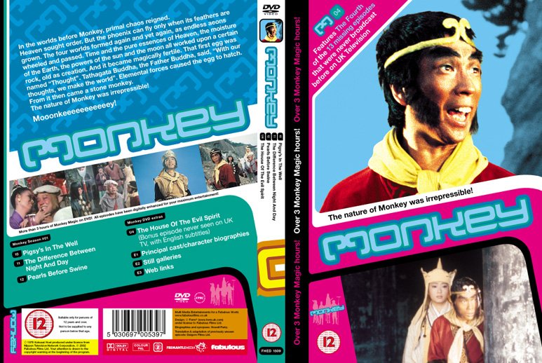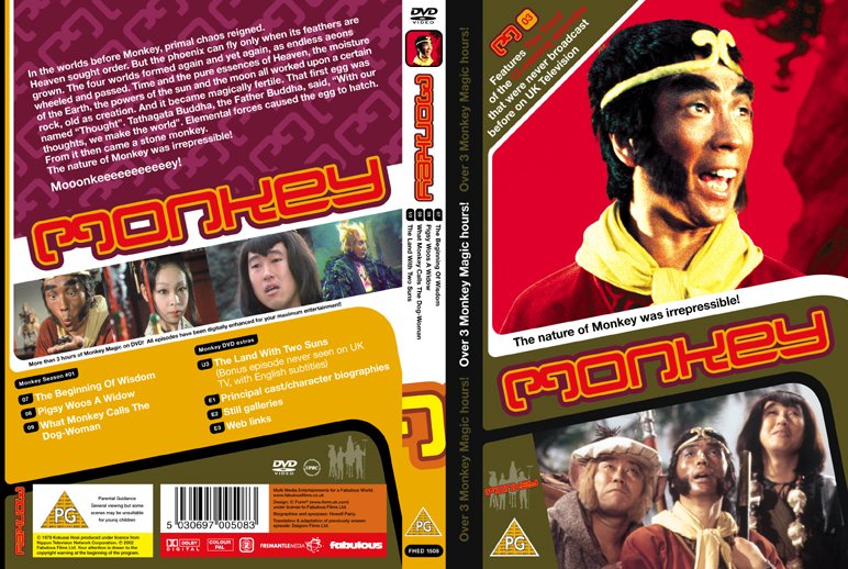 2) At the top of each DVD box, the first 9 DVDs (episodes 1 - 27) will have the narrator's intro speech "In the worlds before Monkey..." from season 1, and the last 4 DVDs (episodes 28 - 39) will have the narrator's intro speech from season 2.